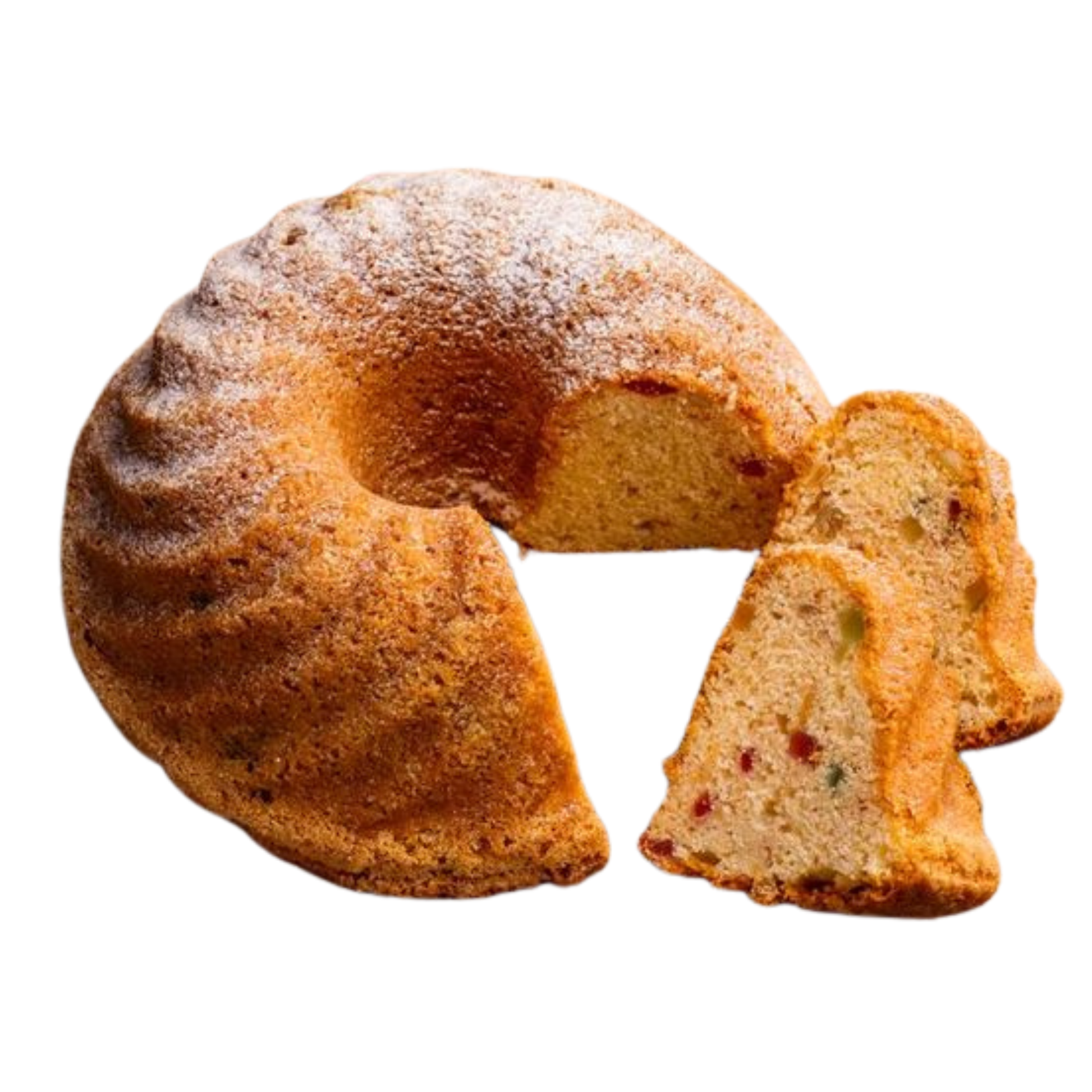 Vehnäjauho (vehnä, askorbiinihappo), laktoositon voi (pastöroitu kerma ja suola), sokeri, kananmuna, hedelmämixkuutio (glukoosi-fruktoosisiirappi, papaija, sitruunankuori, appelsiininkuori, kirsikka, sokeri, värit (e131, e100, e120), happamuudensäätöaine (e330), säilöntäaine: rikkidioksidi), rusina (rusina, kasviöljy (auringonkukka)), manteli, leivinjauhe (stabilointiaine e450i, maissitärkkelys, nostatusaine e500), iskukuumennettu laktoositon vispikerma (kerma, stabilointiaine karrageeni.)