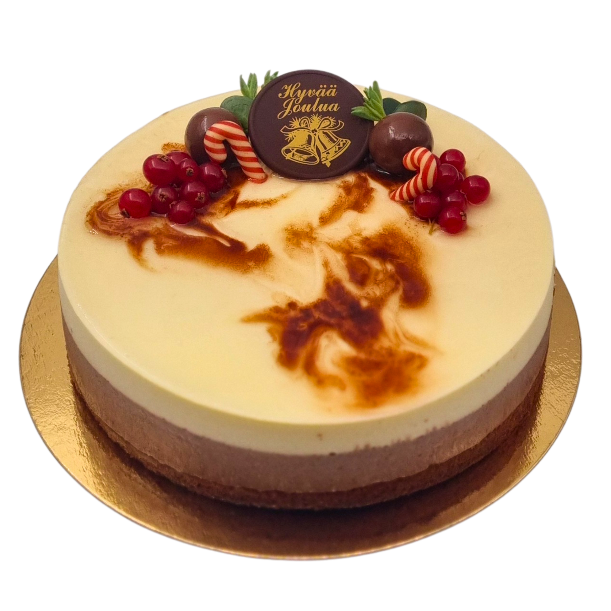 Pohja: Kaakaopohja (KANANMUNA, sokeri, VEHNÄjauho, kaakaojauhe, leivinjauhe).